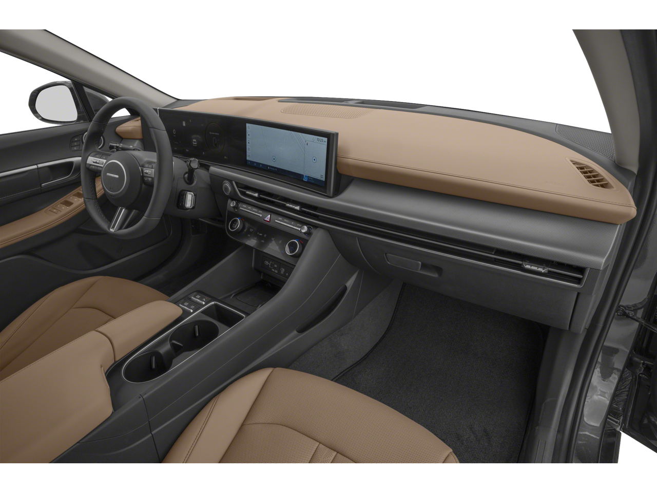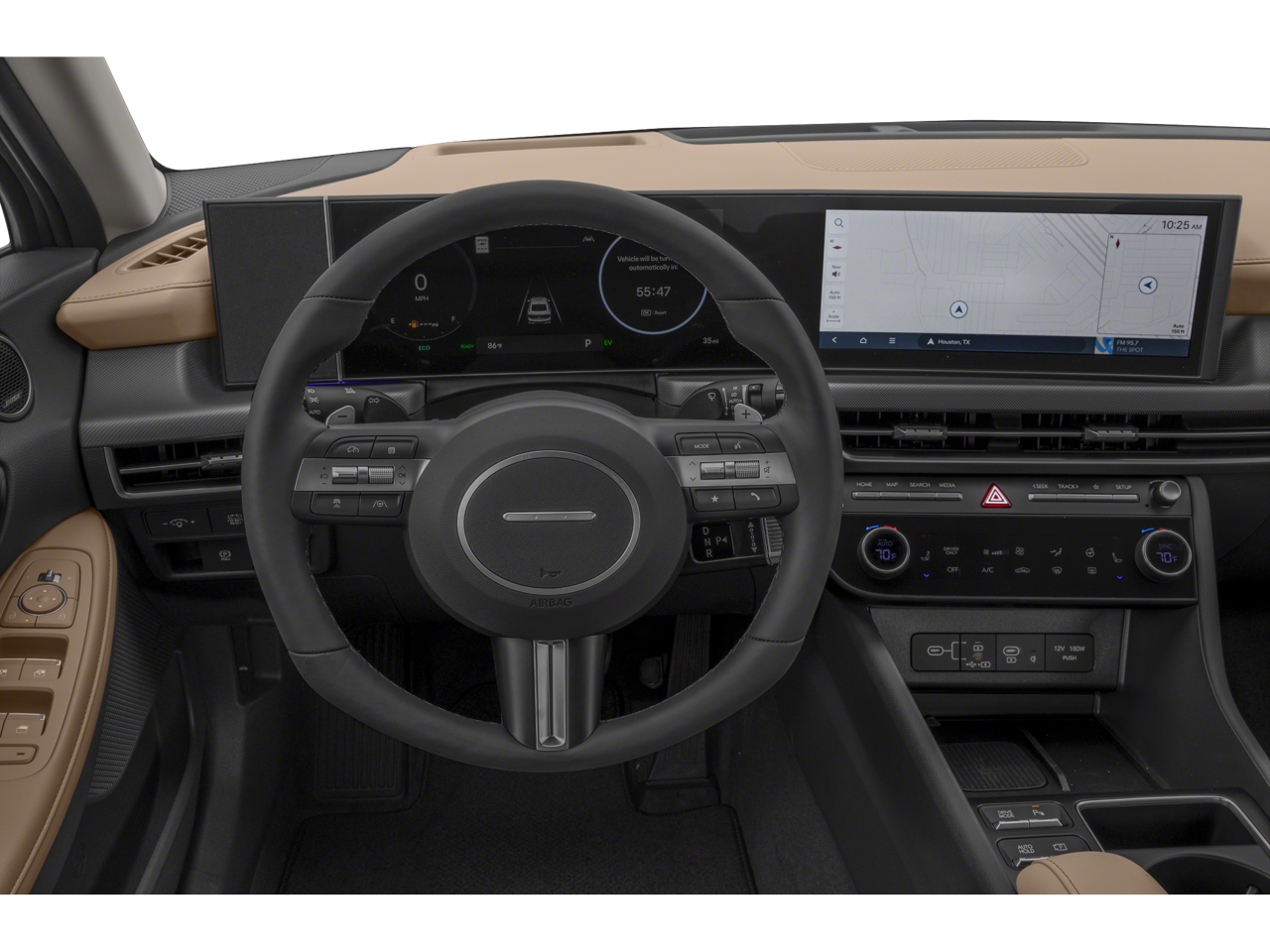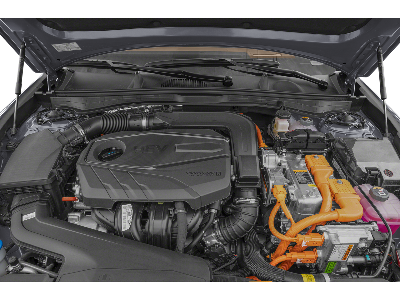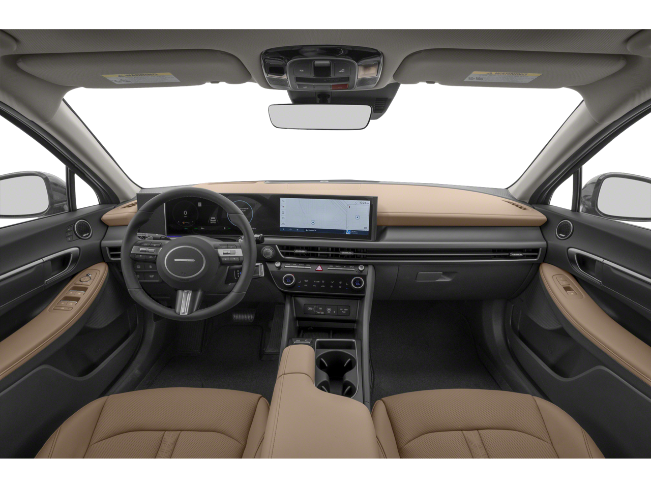 This 2025 Hyundai Sonata Hybrid is equipped with Option Group 01, I4, 12 Speakers, 17 x 7.0J Aluminum Alloy Wheels, 4-Wheel Disc Brakes, ABS brakes, Air Conditioning, All-Season Fitted Liners, Alloy wheels, AM/FM radio: SiriusXM, Apple CarPlay & Android Auto, Auto High-beam Headlights, Auto-dimming Rear-View mirror, Automatic temperature control, Brake assist, Bumpers: body-color, Cargo Block, Carpeted Floor Mats, Delay-off headlights, Driver door bin, Driver vanity mirror, Dual front impact airbags, Dual front side impact airbags, Electronic Stability Control, Emergency communication system: Bluelink+, First Aid Kit, Four wheel independent suspension, Front anti-roll bar, Front Bucket Seats, Front Center Armrest, Front dual zone A/C, Front reading lights, Fully automatic headlights, Heads-Up Display, Heated & Ventilated Front Bucket Seats, Heated door mirrors, Heated front seats, Heated steering wheel, Illuminated entry, Knee airbag, Lane Departure Warning System, Leather Seating Surfaces, Leather steering wheel, Low tire pressure warning, Memory seat, Navigation System, Occupant sensing airbag, Outside temperature display, Overhead airbag, Overhead console, Panic alarm, Passenger door bin, Passenger vanity mirror, Power door mirrors, Power driver seat, Power moonroof, Power passenger seat, Power steering, Power windows, Radio data system, Radio: AM/FM/HD/SiriusXM, Rain sensing wipers, Rear anti-roll bar, Rear seat center armrest, Rear side impact airbag, Rear window defroster, Remote keyless entry, Security system, Speed control, Speed-sensing steering, Speed-Sensitive Wipers, Split folding rear seat, Spoiler, Steering wheel mounted audio controls, Tachometer, Telescoping steering wheel, Tilt steering wheel, Traction control, Trip computer, Variably intermittent wipers, Ventilated front seats, and Wheel Locks.