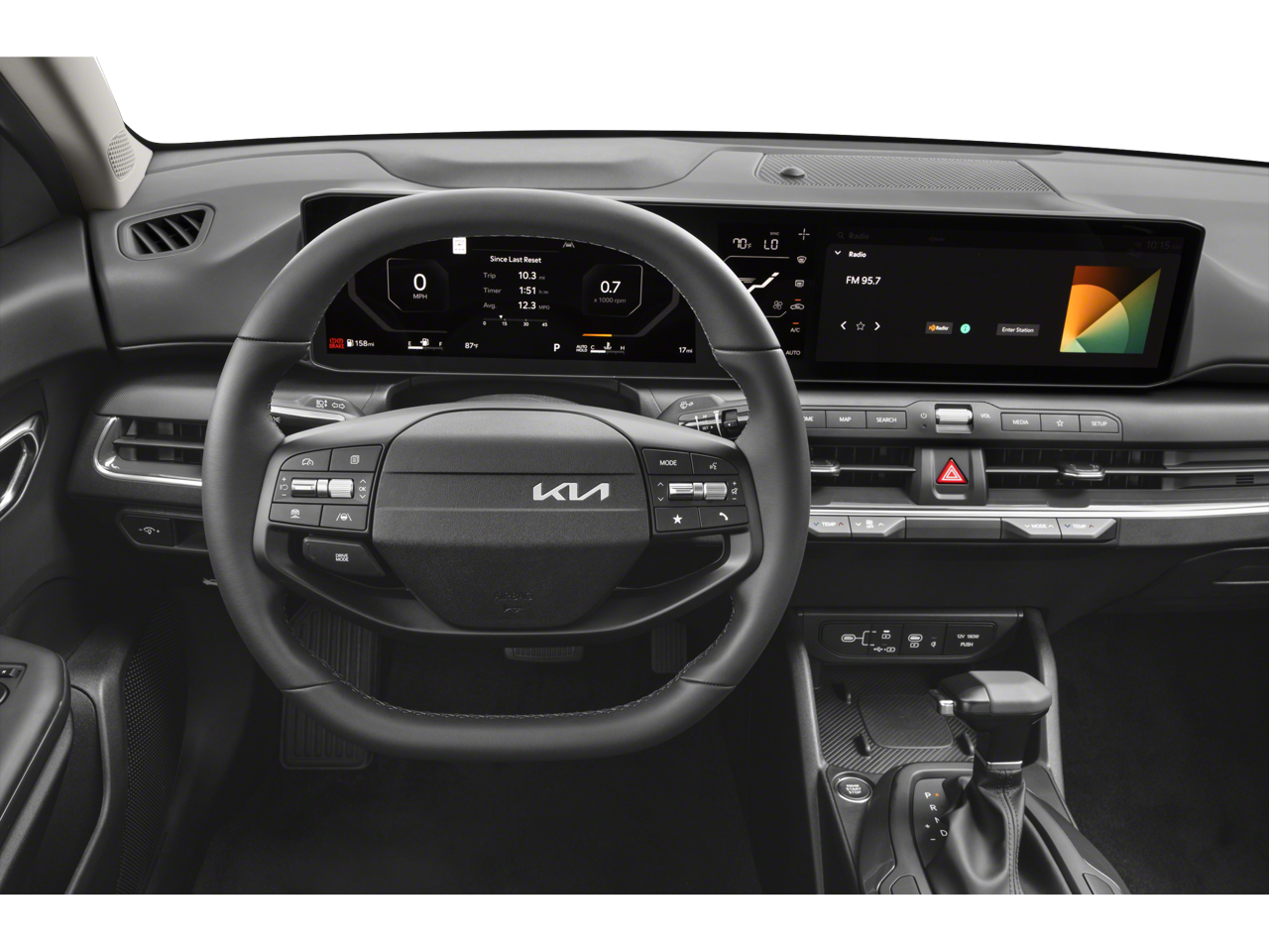 This 2025 Kia K4 is equipped with 4-Wheel Disc Brakes, 6 Speakers, ABS brakes, Air Conditioning, Alloy wheels, AM/FM radio: SiriusXM, Apple CarPlay & Android Auto, Auto High-beam Headlights, Automatic temperature control, Brake assist, Bumpers: body-color, Carpeted Floor Mats, Delay-off headlights, Driver door bin, Driver vanity mirror, Dual front impact airbags, Dual front side impact airbags, Electronic Stability Control, Front anti-roll bar, Front Bucket Seats, Front Center Armrest, Front dual zone A/C, Front reading lights, Front wheel independent suspension, Fully automatic headlights, Heated door mirrors, Illuminated entry, Low tire pressure warning, Occupant sensing airbag, Outside temperature display, Overhead airbag, Overhead console, Panic alarm, Passenger door bin, Passenger vanity mirror, Power door mirrors, Power steering, Power windows, Radio data system, Radio: 12.3 Touchscreen Audio Display, Rear side impact airbag, Rear window defroster, Remote keyless entry, Security system, Speed control, Split folding rear seat, Steering wheel mounted audio controls, Tachometer, Telescoping steering wheel, Tilt steering wheel, Traction control, Trip computer, Upgraded Cloth Seat Trim, Variably intermittent wipers, and Wheels: 17 x 7.0J Black Machined Alloy.