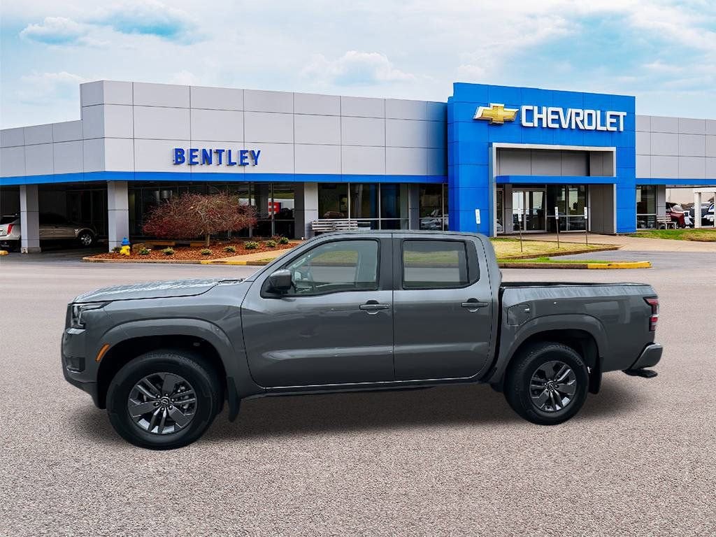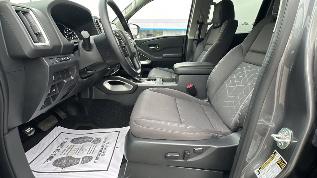This 2025 Nissan Frontier is equipped with 4WD, 17 Alloy Wheels, 3.692 Axle Ratio, 4-Wheel Disc Brakes, 6 Speakers, ABS brakes, Air Conditioning, Alloy wheels, AM/FM radio: SiriusXM, Anti-whiplash front head restraints, Auto High-beam Headlights, Blind Spot Warning, Brake assist, Bumpers: body-color, Carpeted Floor Mats, Delay-off headlights, Driver door bin, Driver vanity mirror, Drop-In Bed Liner & Bumper Step, Dual front impact airbags, Dual front side impact airbags, Electronic Stability Control, Emergency communication system, Front anti-roll bar, Front Bucket Seats, Front Center Armrest, Front reading lights, Front wheel independent suspension, Fully automatic headlights, Illuminated entry, Knee airbag, Low tire pressure warning, Occupant sensing airbag, Overhead airbag, Overhead console, Panic alarm, Passenger door bin, Passenger vanity mirror, Power door mirrors, Power driver seat, Power steering, Power windows, Premium Cloth Seat Trim, Radio data system, Radio: SXM/AM/FM/AUX/USB Audio System, Rear anti-roll bar, Rear seat center armrest, Rear side impact airbag, Rear step bumper, Remote keyless entry, Security system, Speed control, Speed-sensing steering, Splash Guards Accessory, Split folding rear seat, Steering wheel mounted audio controls, Tachometer, Telescoping steering wheel, Tilt steering wheel, Traction control, Trip computer, Variably intermittent wipers, Voltmeter, and Wireless Apple CarPlay/Wireless Android Auto.